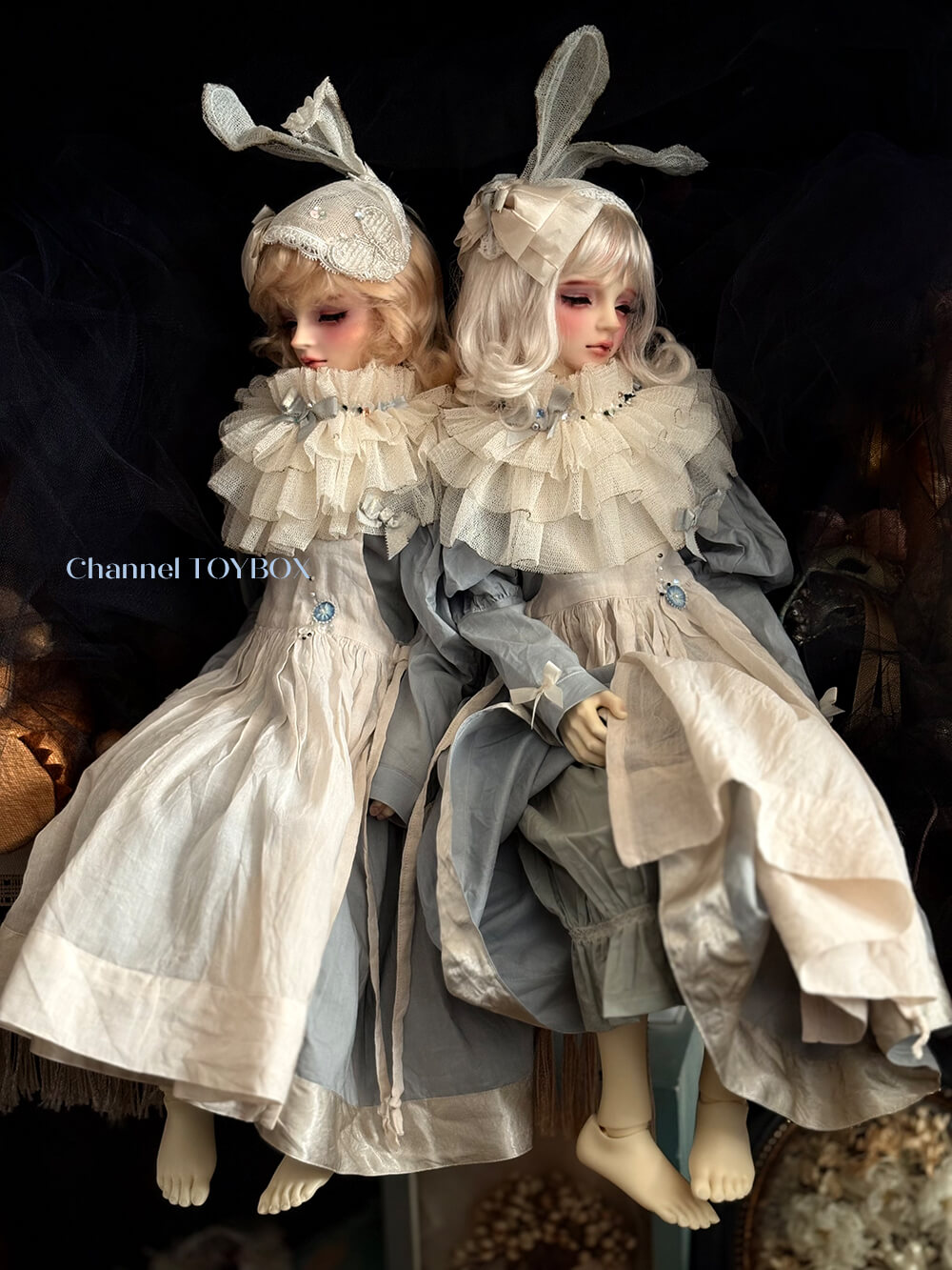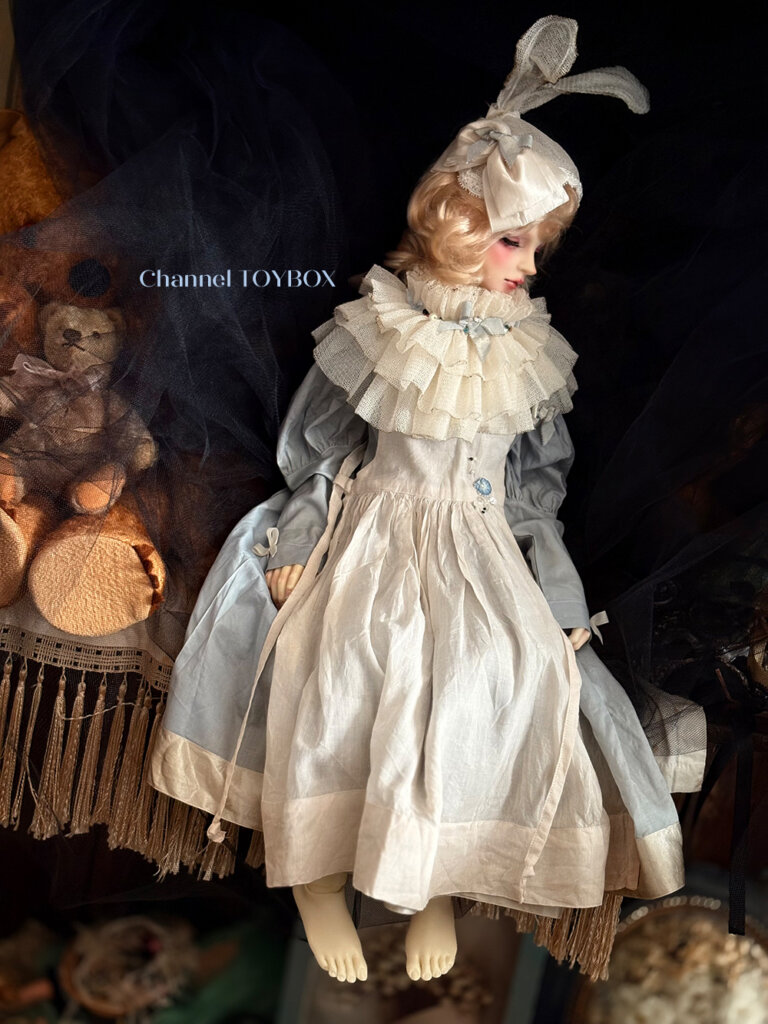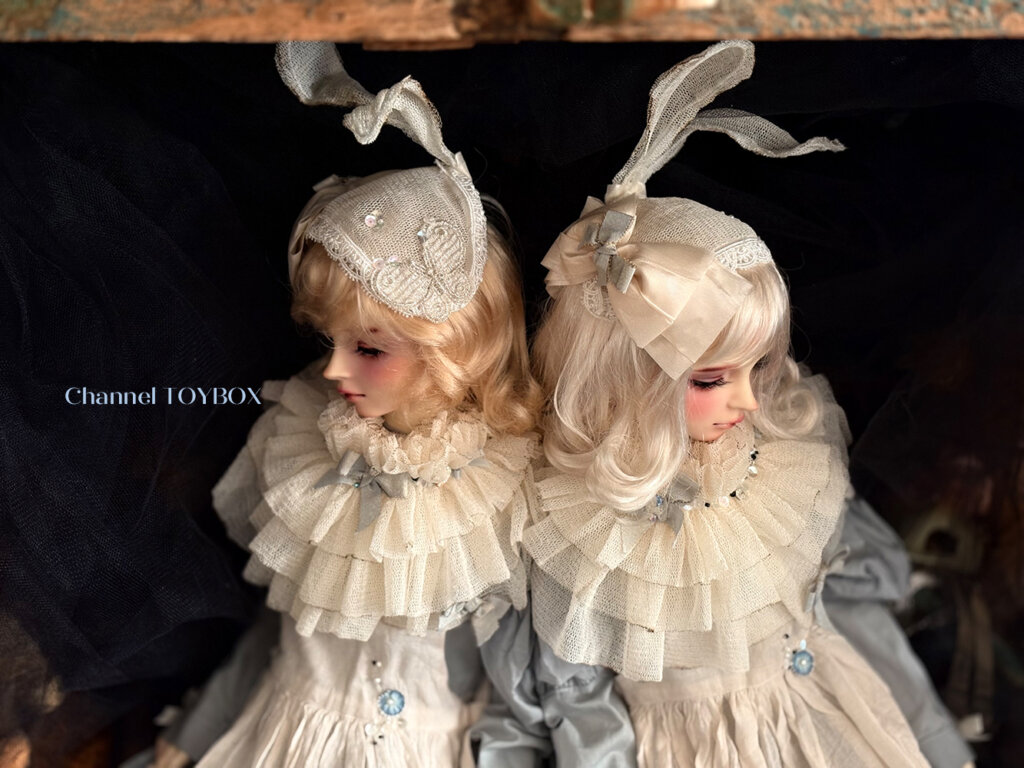 ヘッドドレス:シルクチュールで作っています。こちらは水分には気をつけて下さい。少し固めて形成しておりますがワイヤーをヘッド部分、耳部分に仕込んでいますので、多少大きさ角度は調整できます。