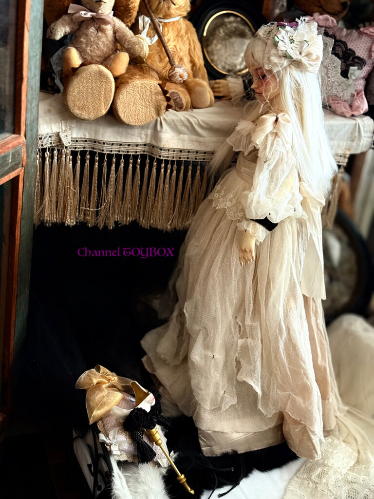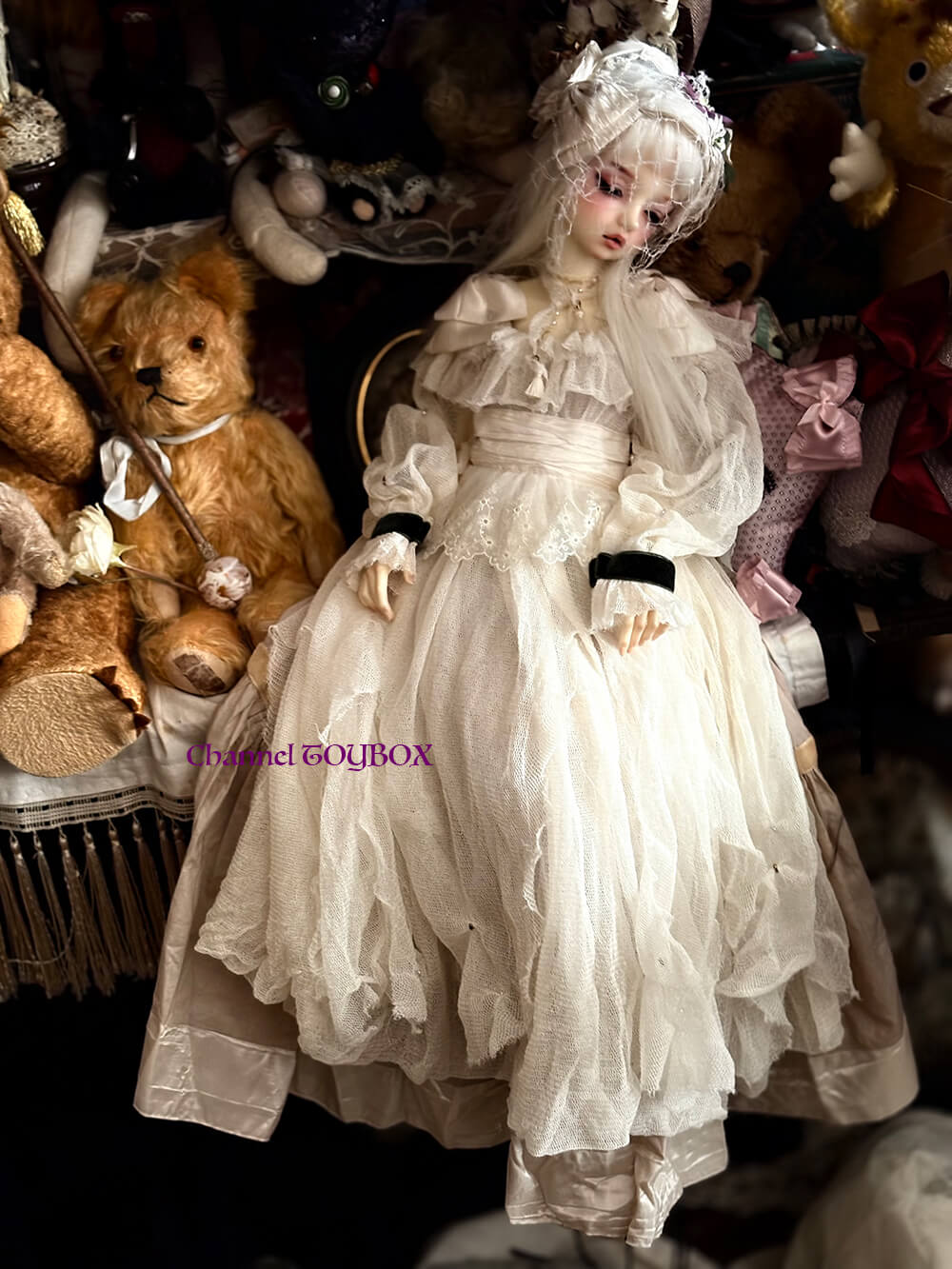 オーバーワンピースはシルクチュールをふんだんに使用しております。